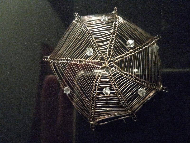 Shadow box with sterling silver spider web is 9.5 inches x 11 inches x 1.5 inches (about 24 cm x 28 cm x 4 cm).