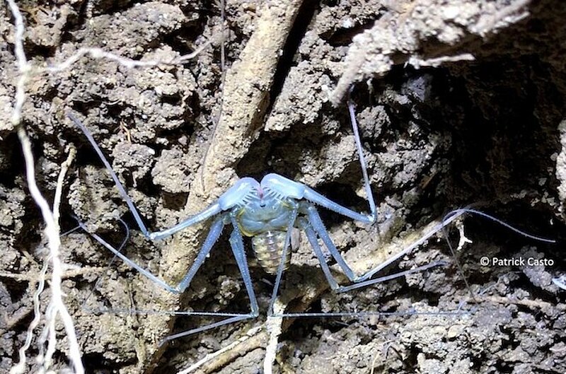 Amblypygids can live around 5-10 years and are found in warm tropical and subtropical regions worldwide. They seek refuge during the day in crevices of trees, rocky outcroppings or cliff banks, underneath rocks or bark, and come out at night to be active. Some species are subterranean and dwell in caves. Most species of amblypygids have eight eyes, while a few species that live in caves have reduced or no eyes.