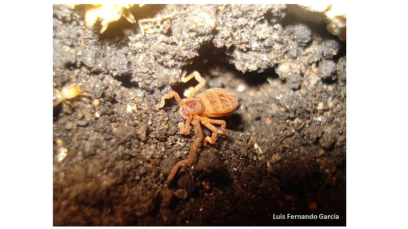 These small arachnids (5 – 10 mm in length) have very thick, sculptured cuticle. The pdeipalps are short and end in pincers. They are active at night and all species are thought to be either completely lacking eyes or with just a pair of pale, light-sensitive organs. They are called hooded tick-spiders because their chelicerae (jaws) are covered with a hinged hood-like plate called the cucullus.