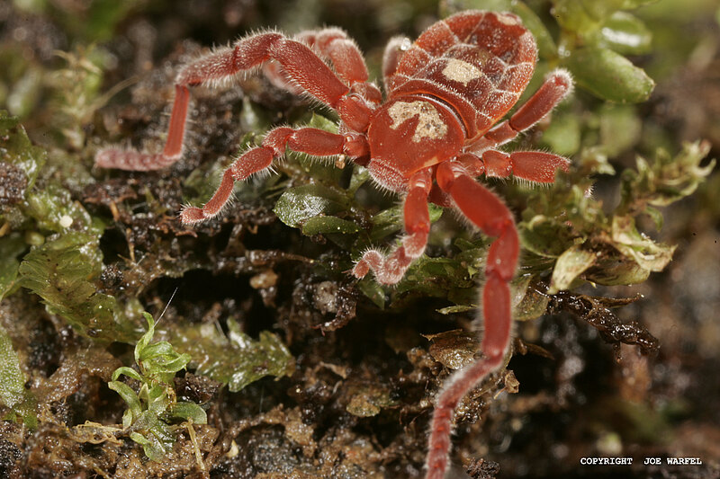 Ricinulei are known as hooded tick-spiders. There are between 50 – 60 species of ricinuleids, all in one family (Ricinoididae). They occur in the rainforests of western and central Africa and in caves and forests from Texas to Peru. Fossil ricinuleids date back to the Carboniferous of Euramerica and the Cretaceous Burmese Amber.