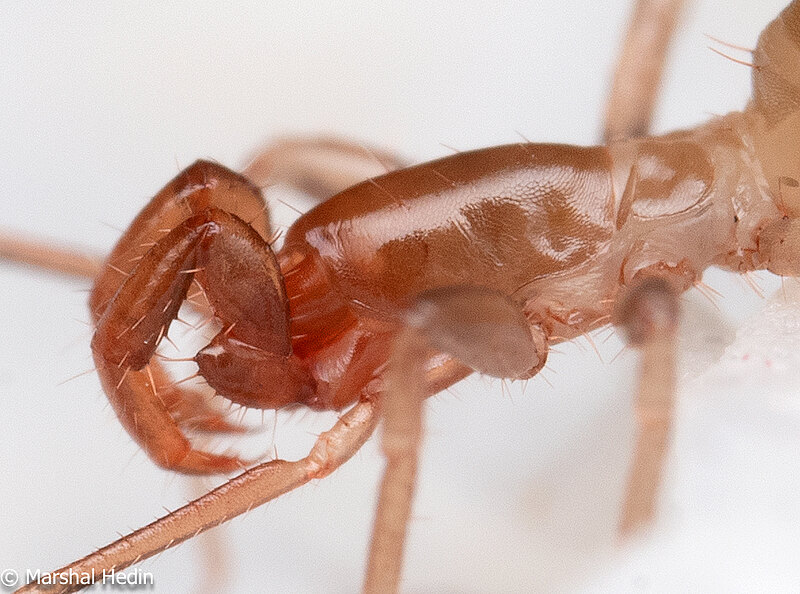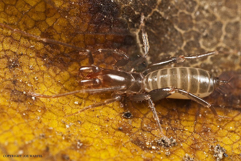 Schizomida are commonly called short-tailed whip scorpions. There are over 200 species of schizomids in two families. These tiny arachnids – adults only between 5 mm – 1 cm – are found primarily in the tropics and subtropics but a few species have been reported from under ice and snow covered rocks. They are active, nocturnal predators that can move either forwards or backwards.